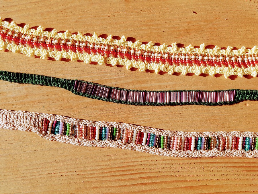 レース糸とビーズで編んだアクセサリー。