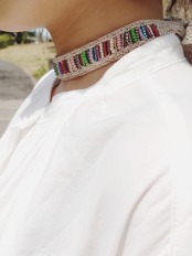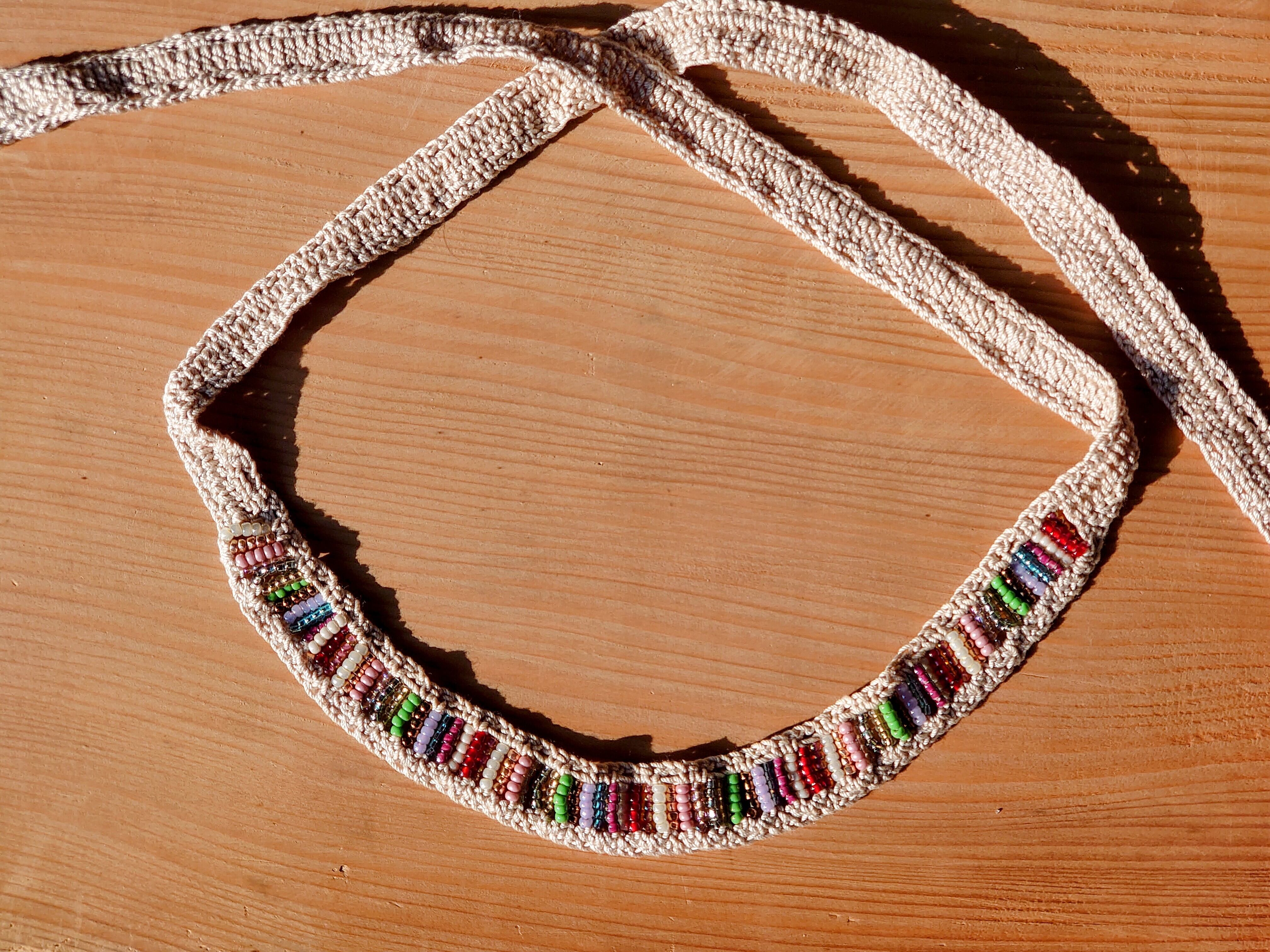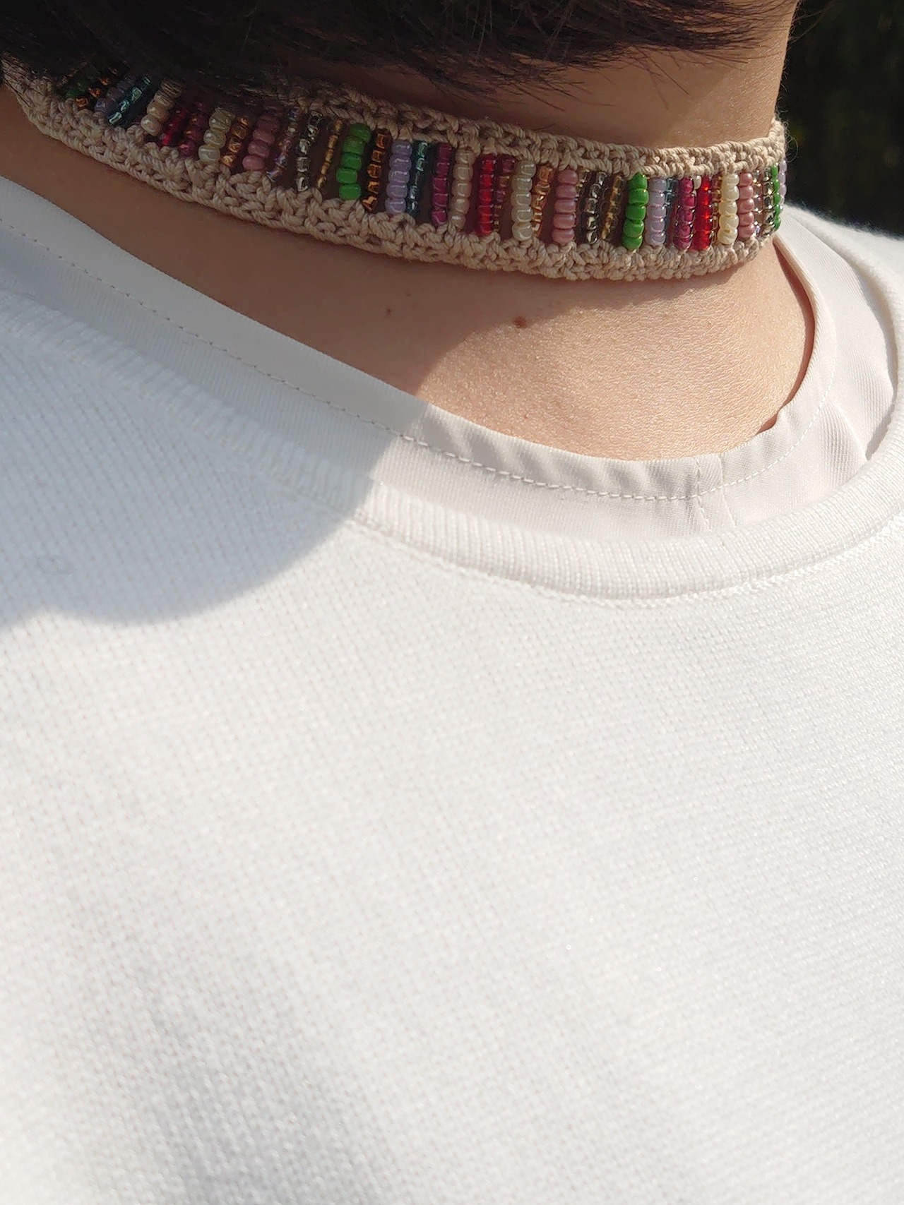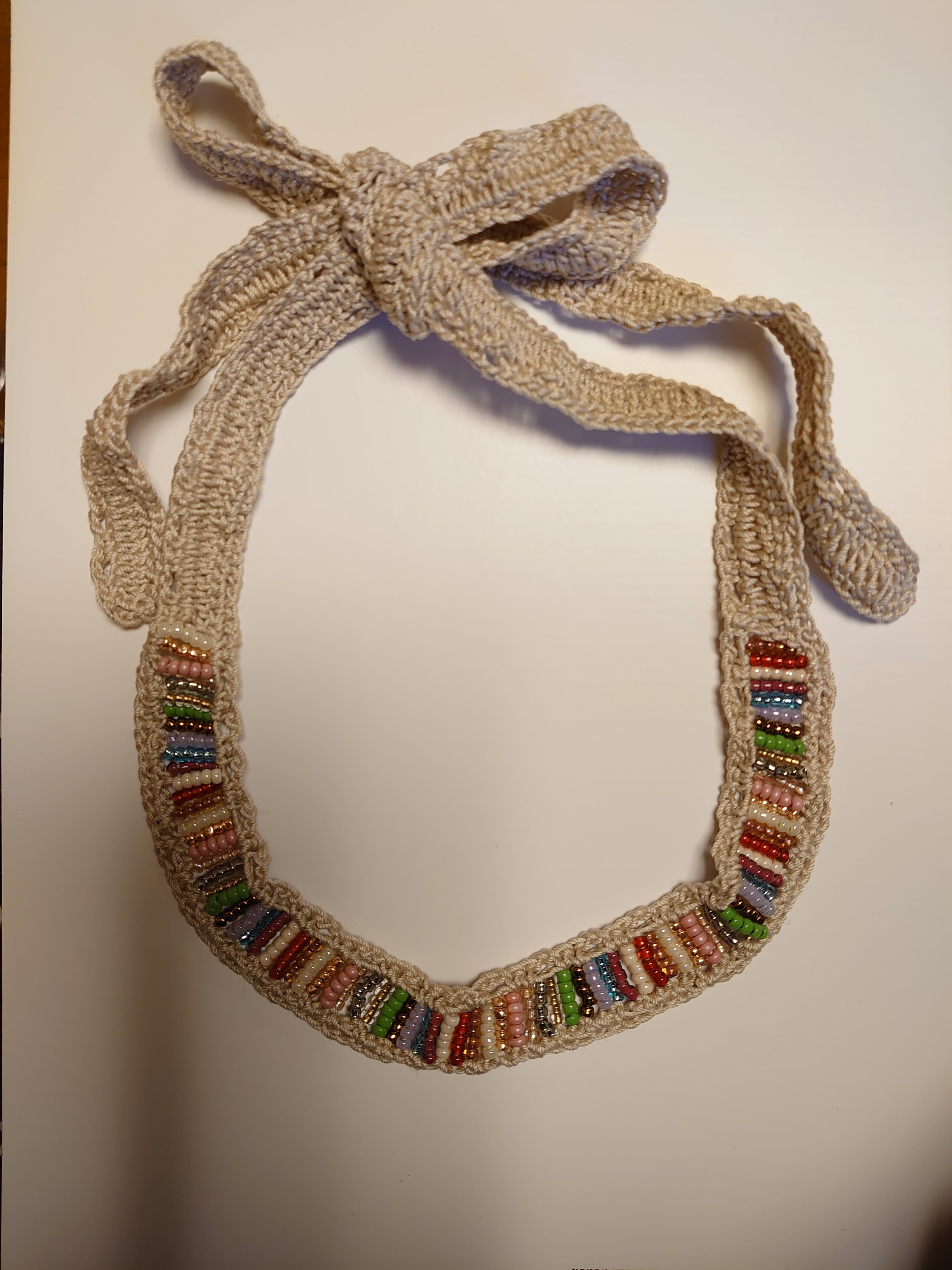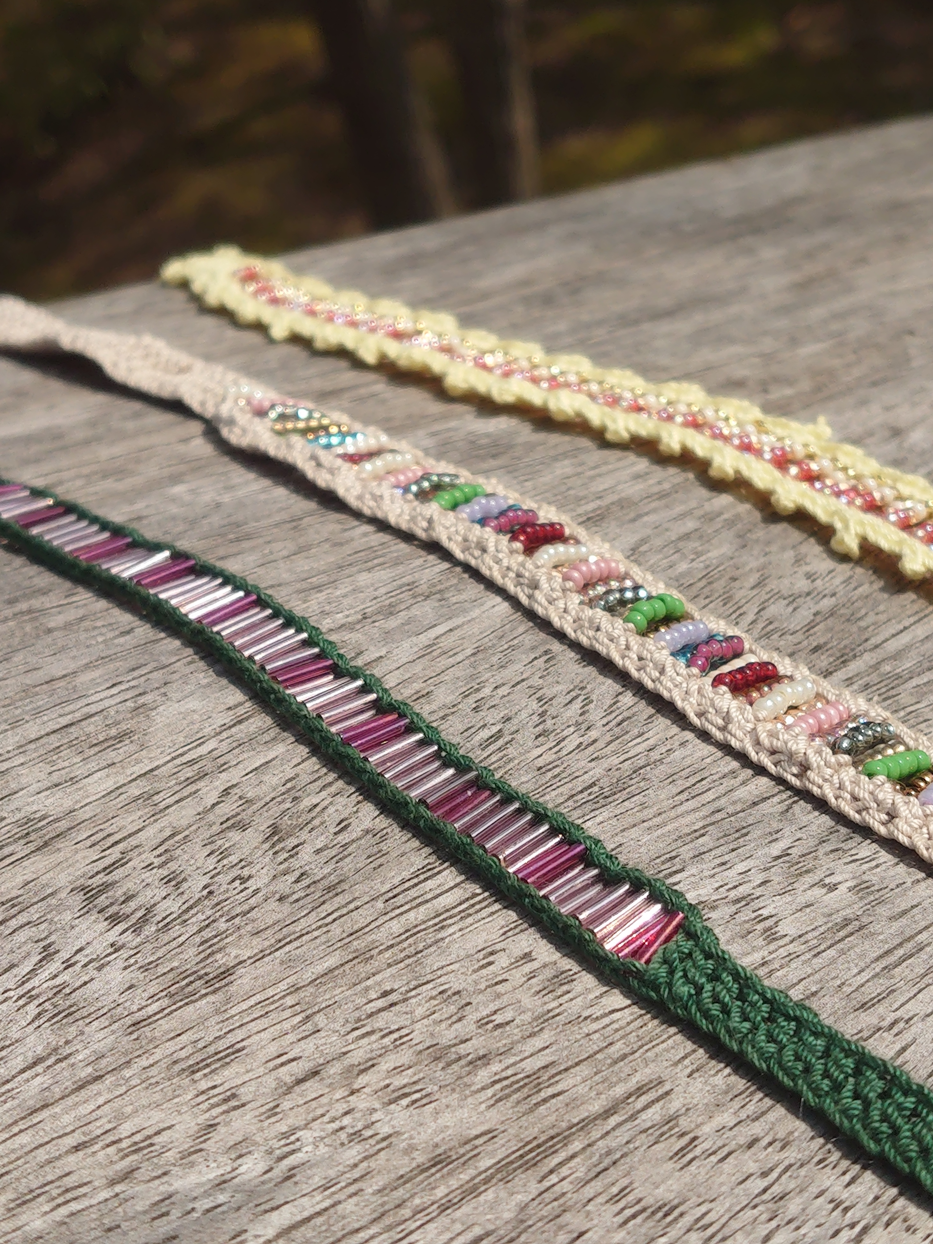 カチューシャのように頭に巻いてヘアアクセサリーにも。(ぎゅっと結べないのでピンで固定するなどしてください。)