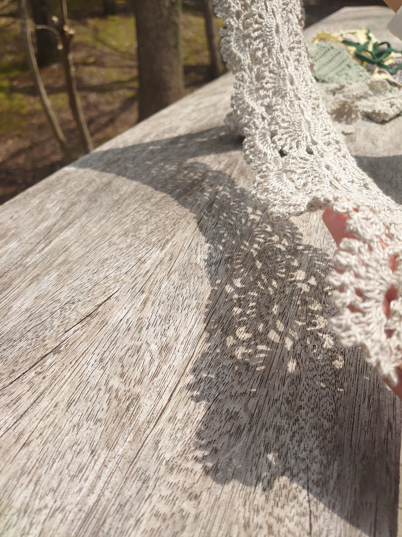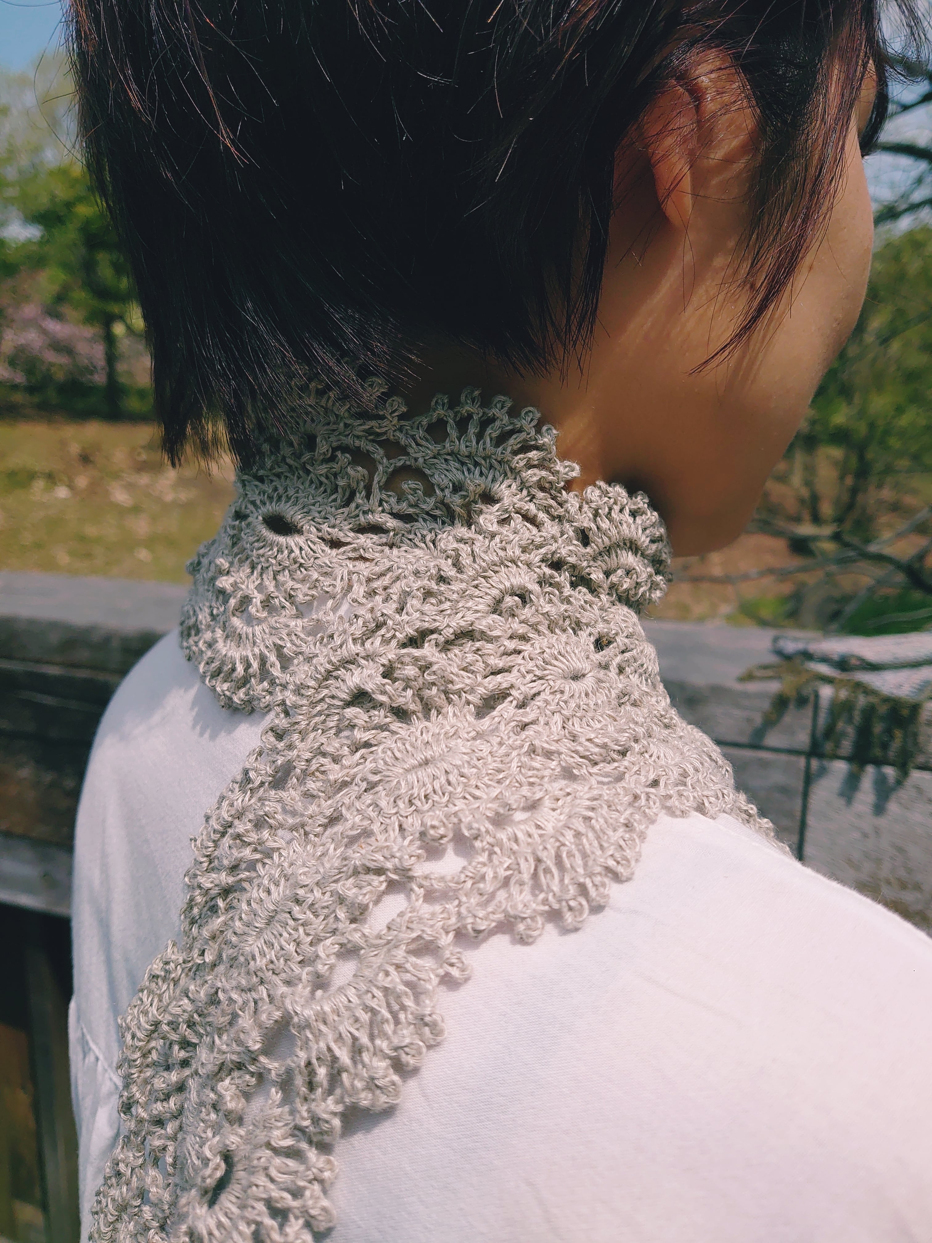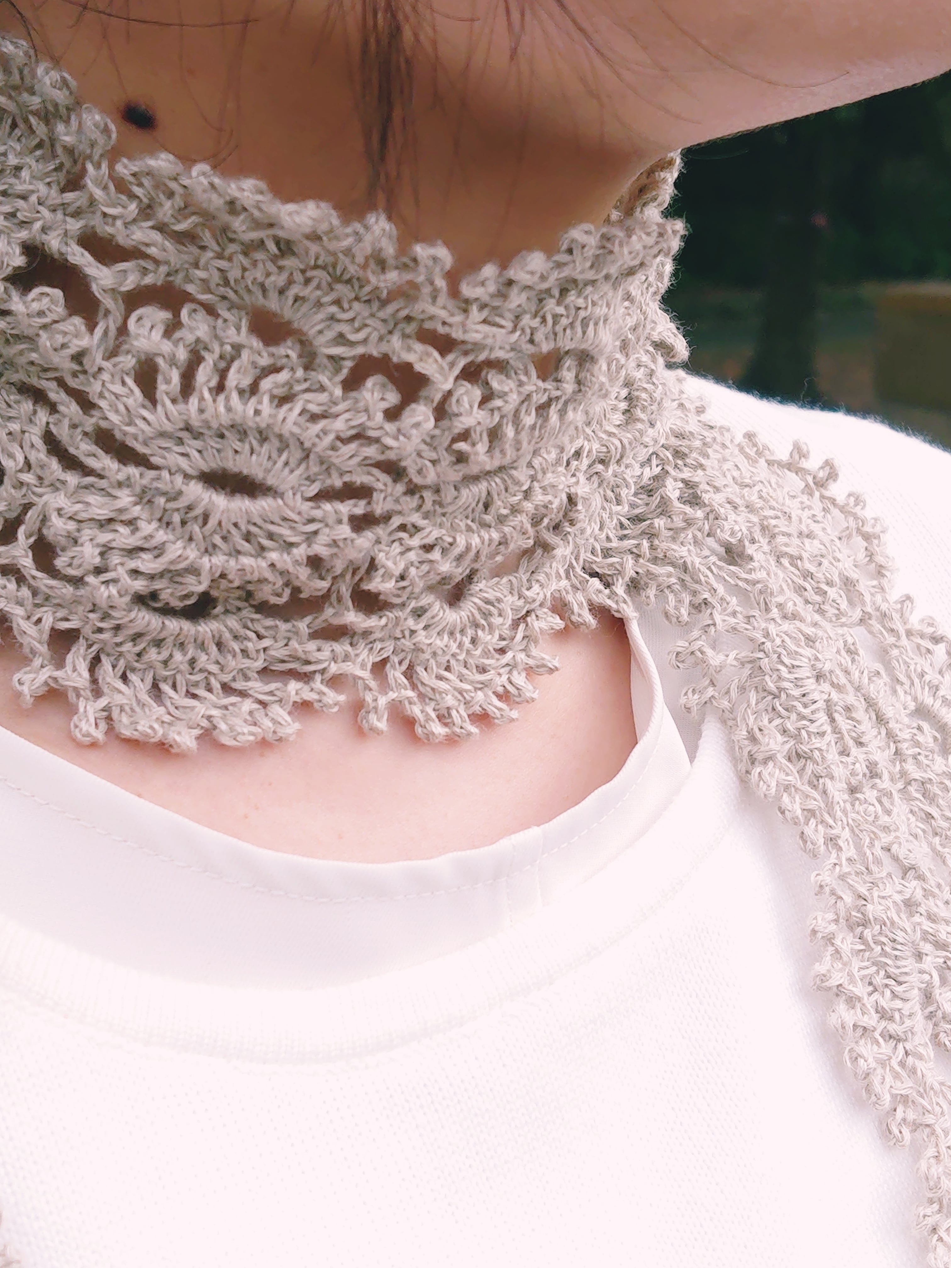 リネン100%の爽やかな糸をレーシーなスカーフにしました。