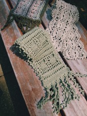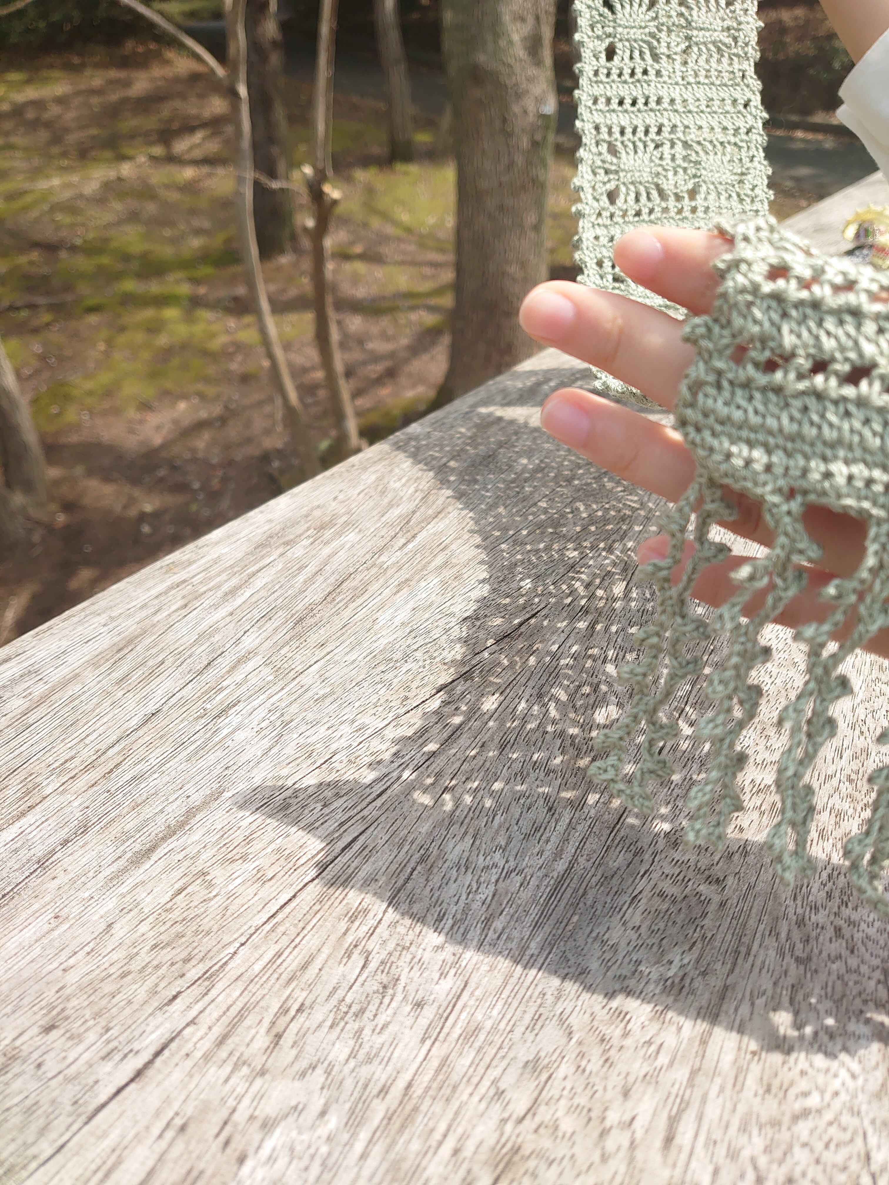 シルクとリネンを使ったサラサラ糸を、レーシーだけどカジュアルなスカーフにしました。