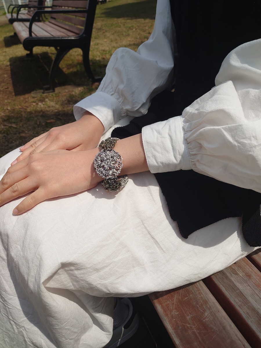 グレーベージュのミックスカラーとカーキとブラウンのミックスカラーを組み合わせたメランジ感たっぷりのマキモノです。