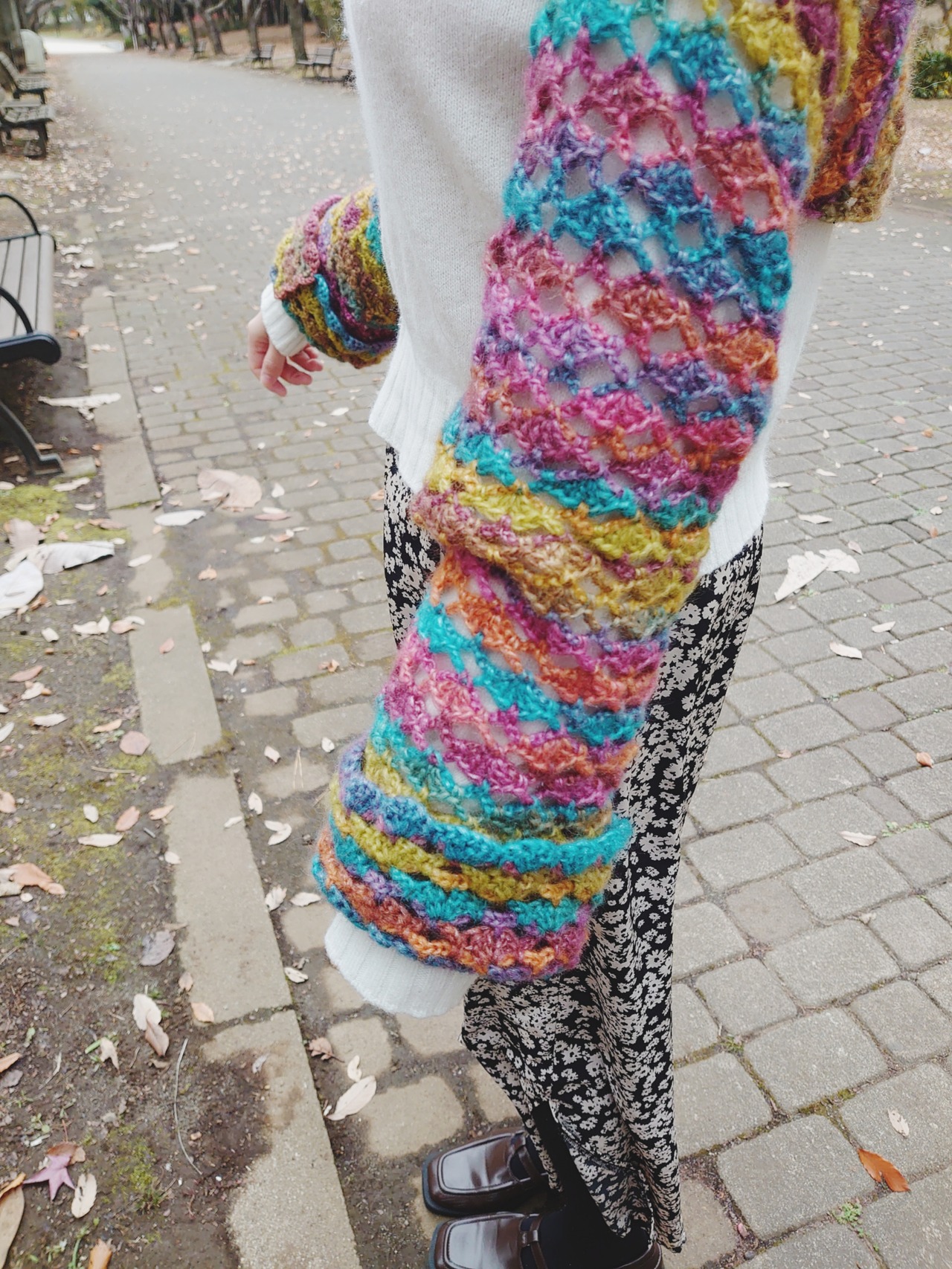 室外ではマフラーとして、室内ではカーディガンとしてコーディネートにちょい足しできますよ。