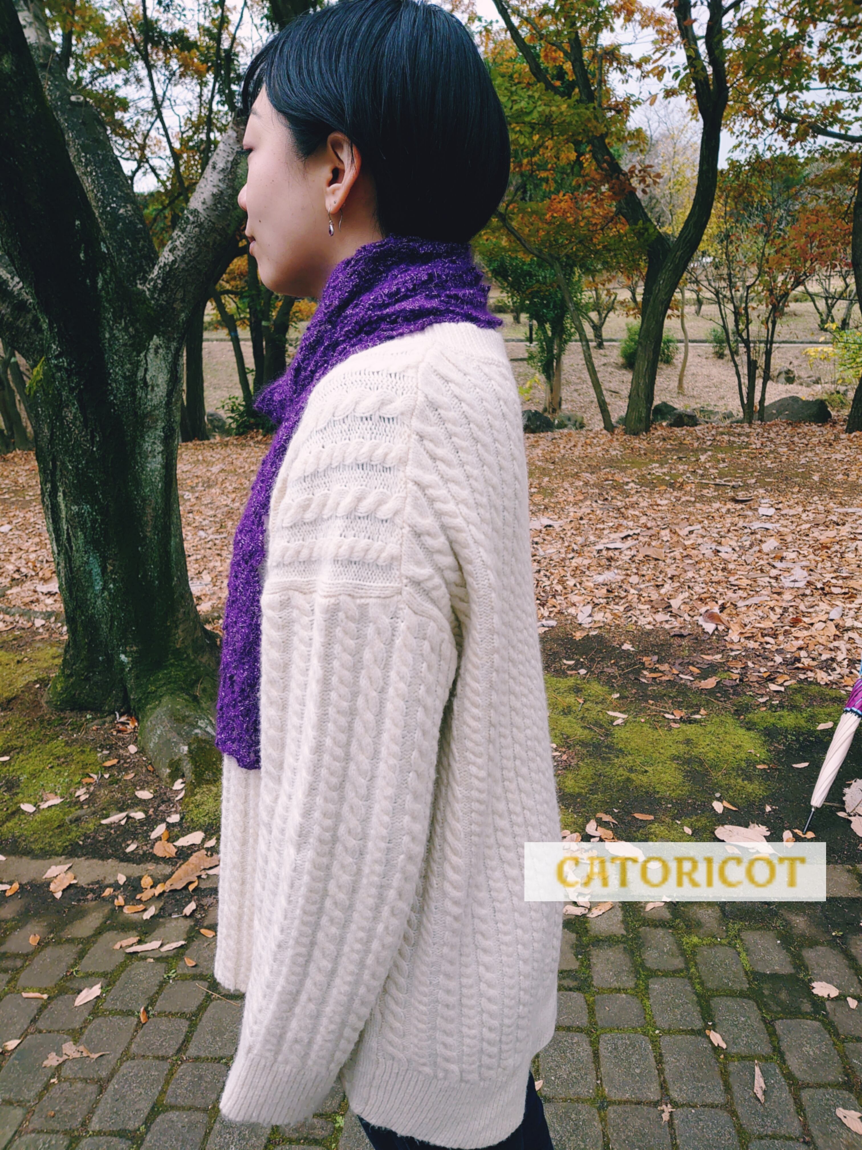 レース編みですが、モヘアなので寒さも大丈夫。